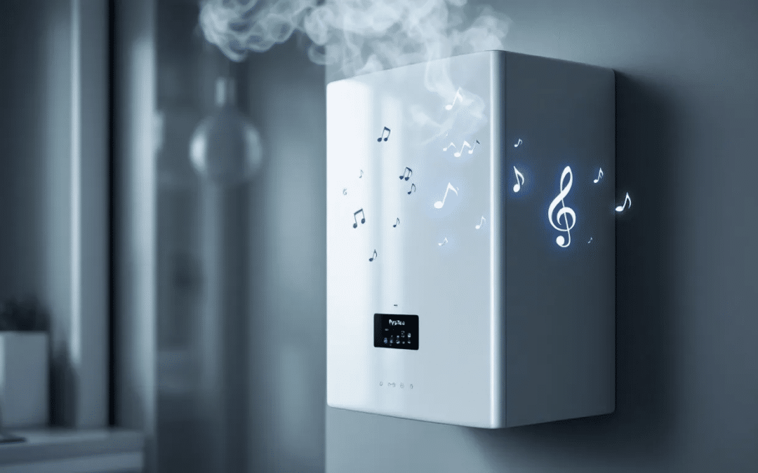 Limescale or sludge can coat the heat exchanger, preventing efficient heat transfer. The metal overheats, water boils locally, and steam bubbles collapse violently. That collapse creates the familiar banging or rumbling sound, often compared to a kettle boiling.